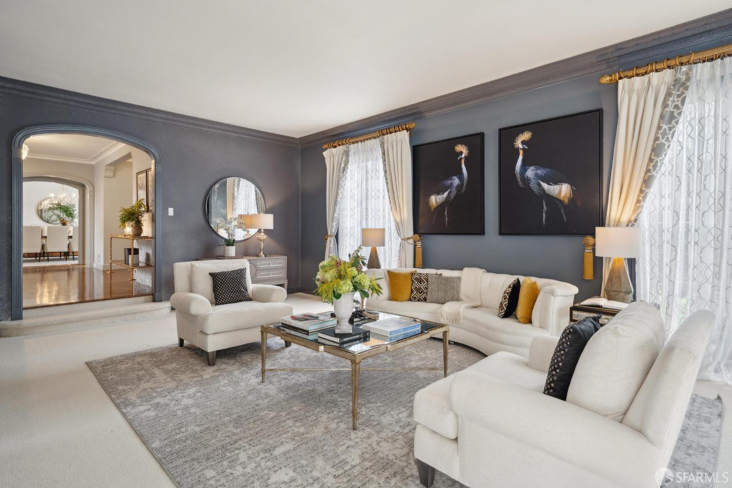 A true San Francisco landmark, this timeless 5,440 sq. ft. estate offers grand spaces for modern living and entertaining. Set on nearly half an acre of lush, landscaped grounds, the home features four spacious en-suite bedrooms, two additional half baths, a formal living room, dining room, family room, breakfast room, eat-in kitchen, billiard room with bar, and a sun-filled lanai. Expansive terraces and elegant windows create a seamless flow between indoor and outdoor living, while abundant natural light highlights beautifully preserved period details throughout. Originally built in 1941 by Lakeside developer Henry Stoneson and designed by renowned architect Harold Stoner, this striking California Colonial embodies classic sophistication. Perfectly positioned on a sprawling corner lot, this iconic residence offers a rare opportunity to own a piece of San Francisco's architectural heritage elevated for today's lifestyle.